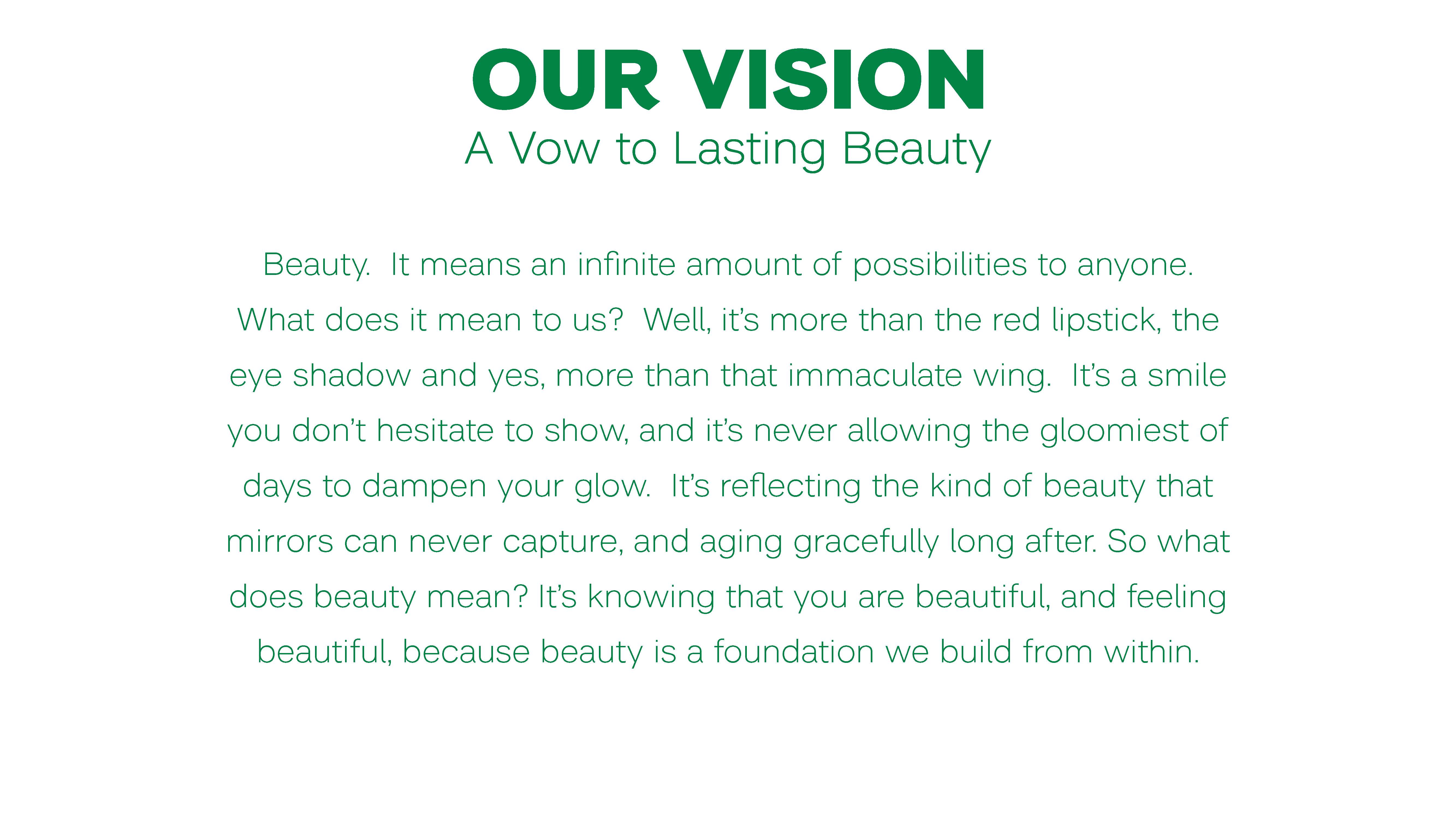 GLOW ON -We all want to keep glowing after the make up comes off. And keep glowing after that too. And we will. A vow to lasting beauty.